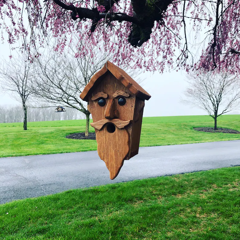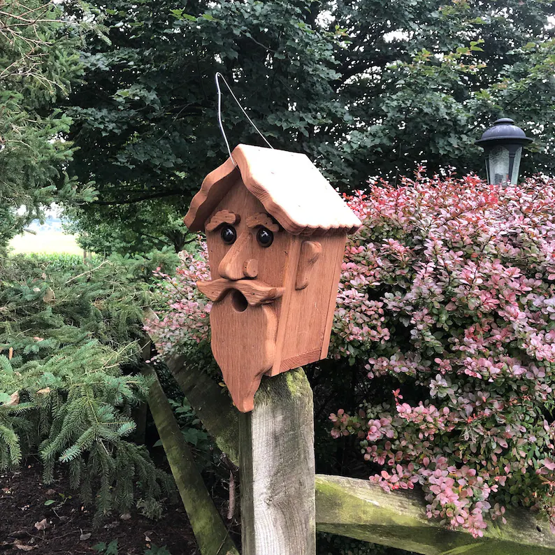 Jaula para Pájaros Artesanal Popular Transfronteriza, Diseño de Cara de Espíritu Feliz, Moderna, de Madera, Desmontable, Comedero para Pájaros de Exterior
