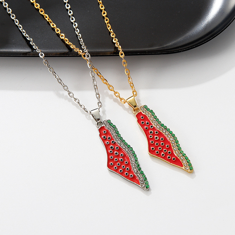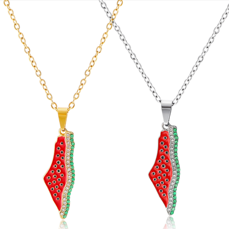 Collar unisex Premium de circonita con incrustaciones de sandía palestina de chapado en oro 18K Pvd personalizado de Israel de acero inoxidable con borde cruzado