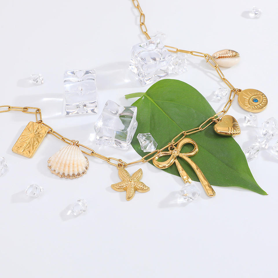 Collar de Moda con Colgante de Estrella de Mar, Concha y Corazón, Cadena de Clavícula de Oro de 18K, Joyería de Moda