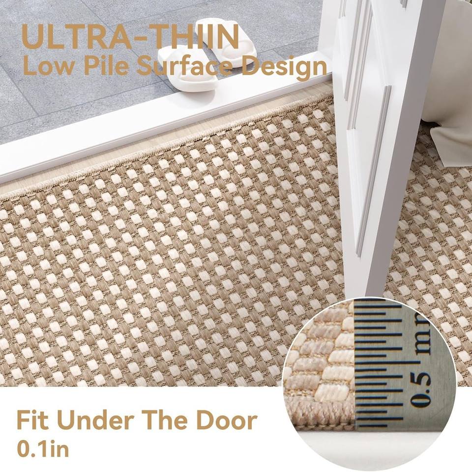 Tapete Tejido Rectangular con Patrón Geométrico Antideslizante de Fibra de Poliéster para Entrada del Hogar