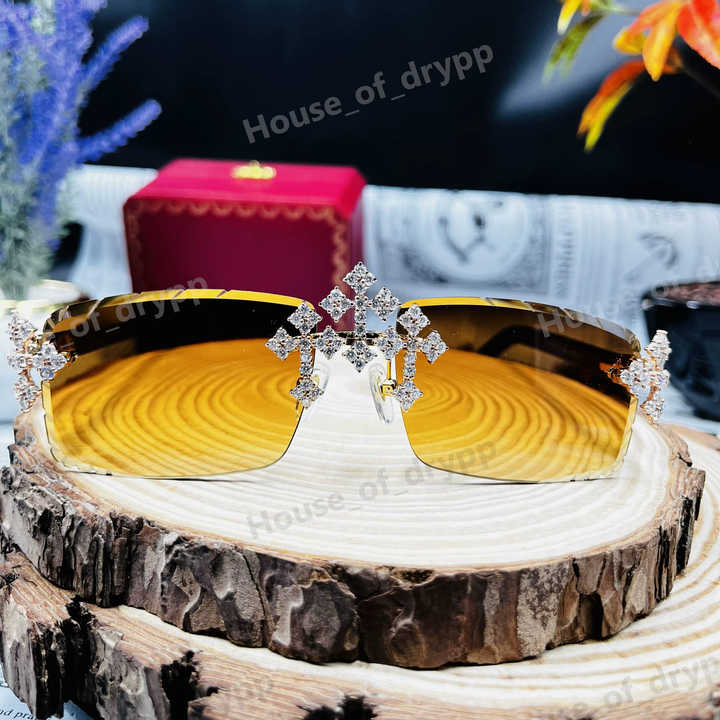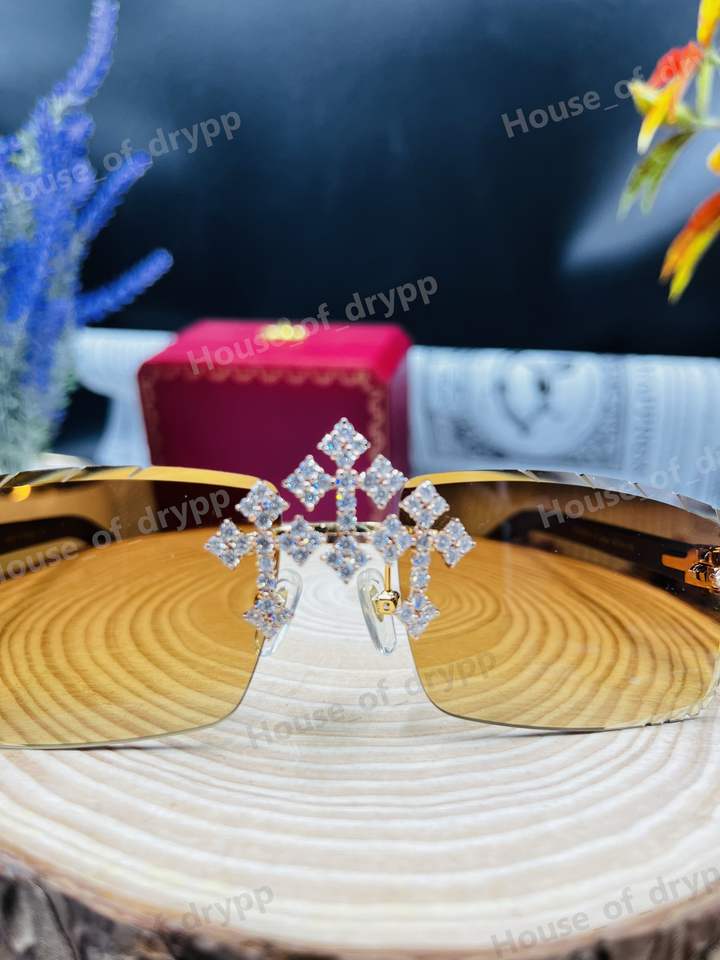 Gafas de Sol Sin Montura con Incrustaciones de Diamantes, Montura de Plata 925, Diamantes Moissanite VVS, Lentes Fotocromáticas, Elegantes y Ligeras