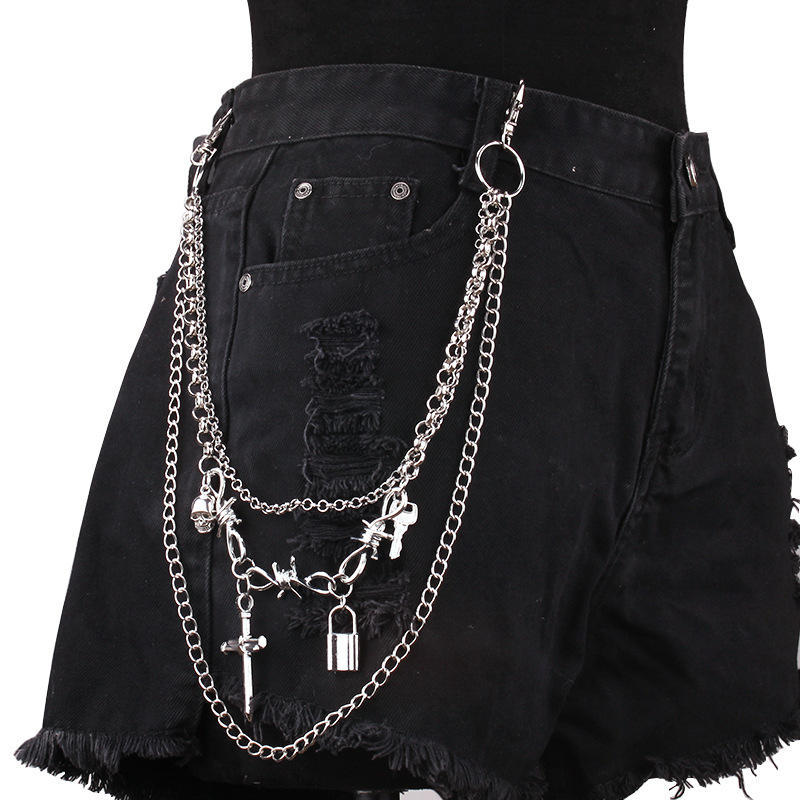 color:Cross padlock multi-layer trouser chain