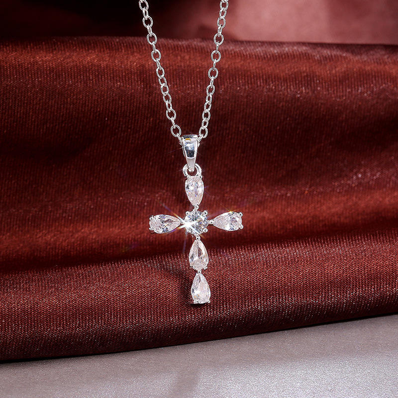 Collar con Colgante de Cruz, Plata 925, Bañado en Rodio, Cristal y Diamantes de Imitación, Joyería Religiosa Cristiana Unisex con Cadena de Caja