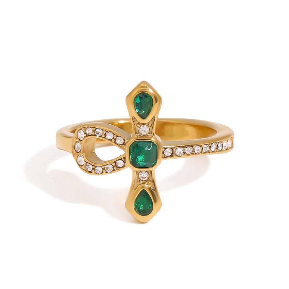 Cross Shape Snake Design Ring 18K Gold Plated With Zircon Emerald Inlay Unisex Fashion Jewelry Gift