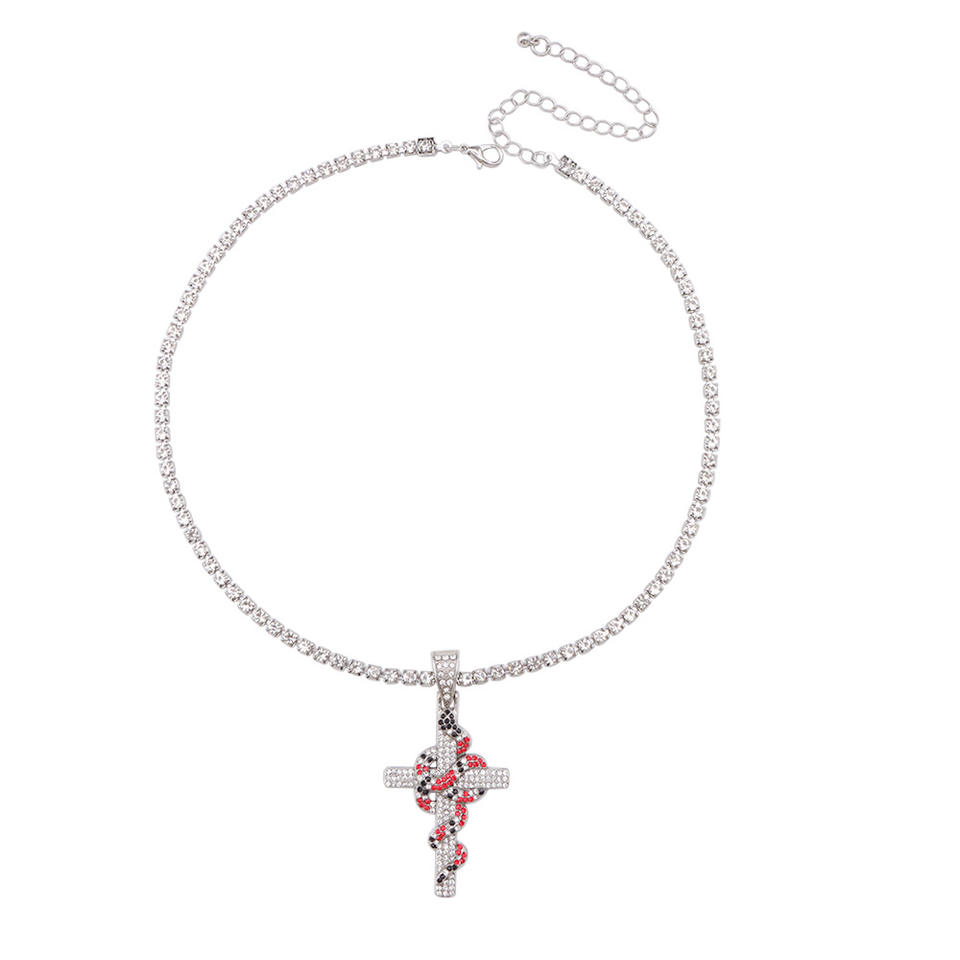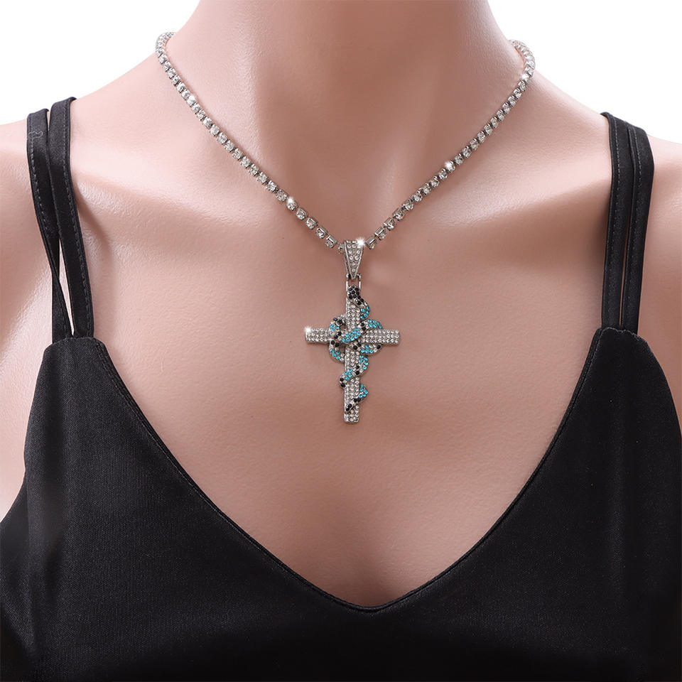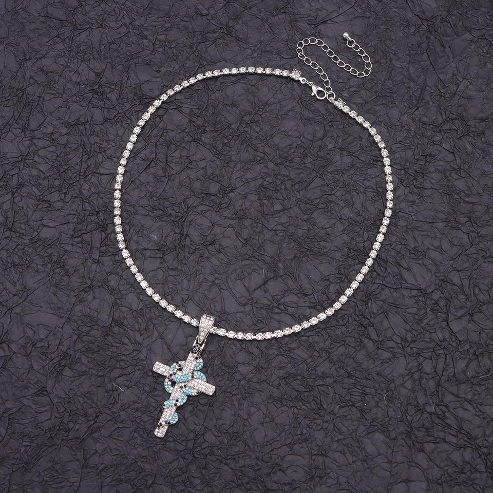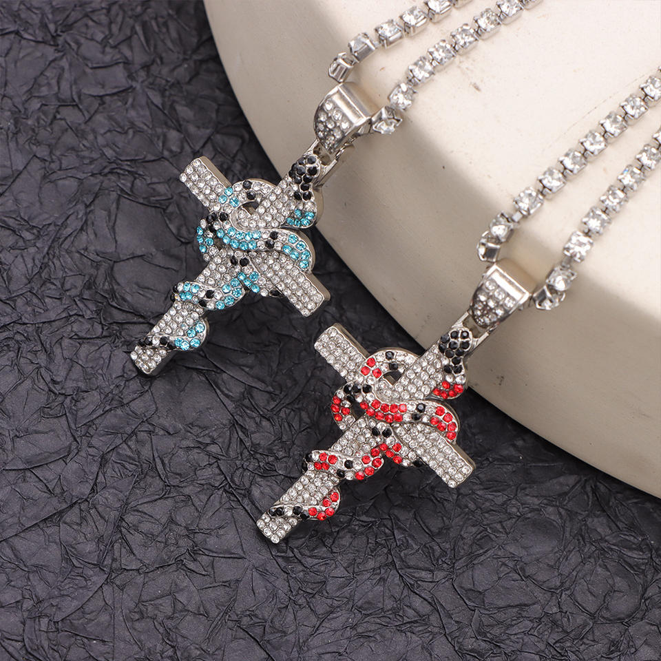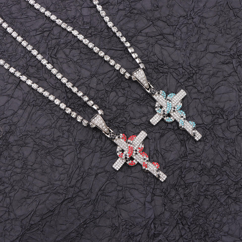 Collar con Colgante de Serpiente Cruzada con Microincrustaciones de Circonio, Estilo Hip Hop para Hombre, Regalo, Origen Yiwu