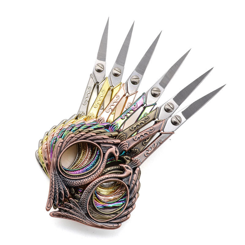 Cross Stitch Embroidery Scissors Stainless Steel Straight Tip Phoenix Design For Home Crafting And Paper Cutting