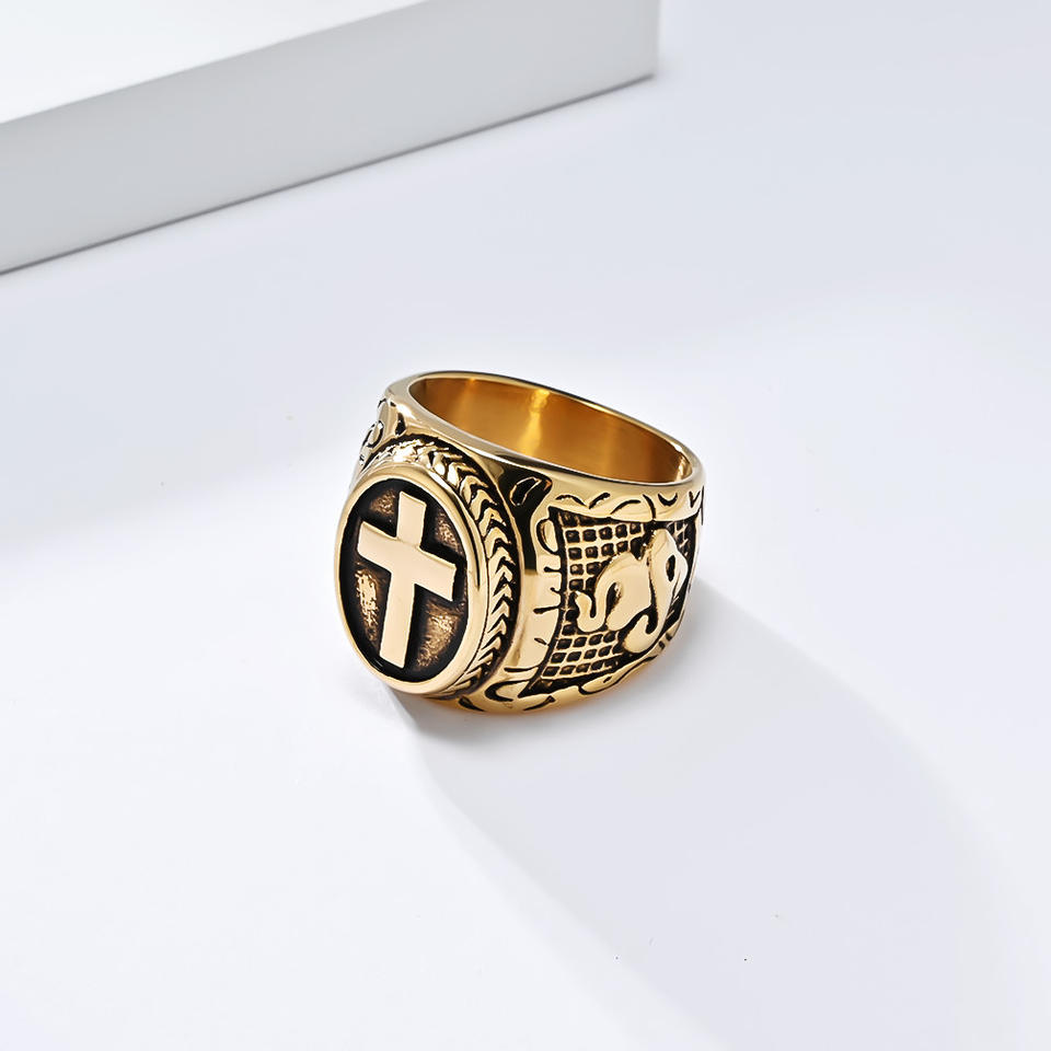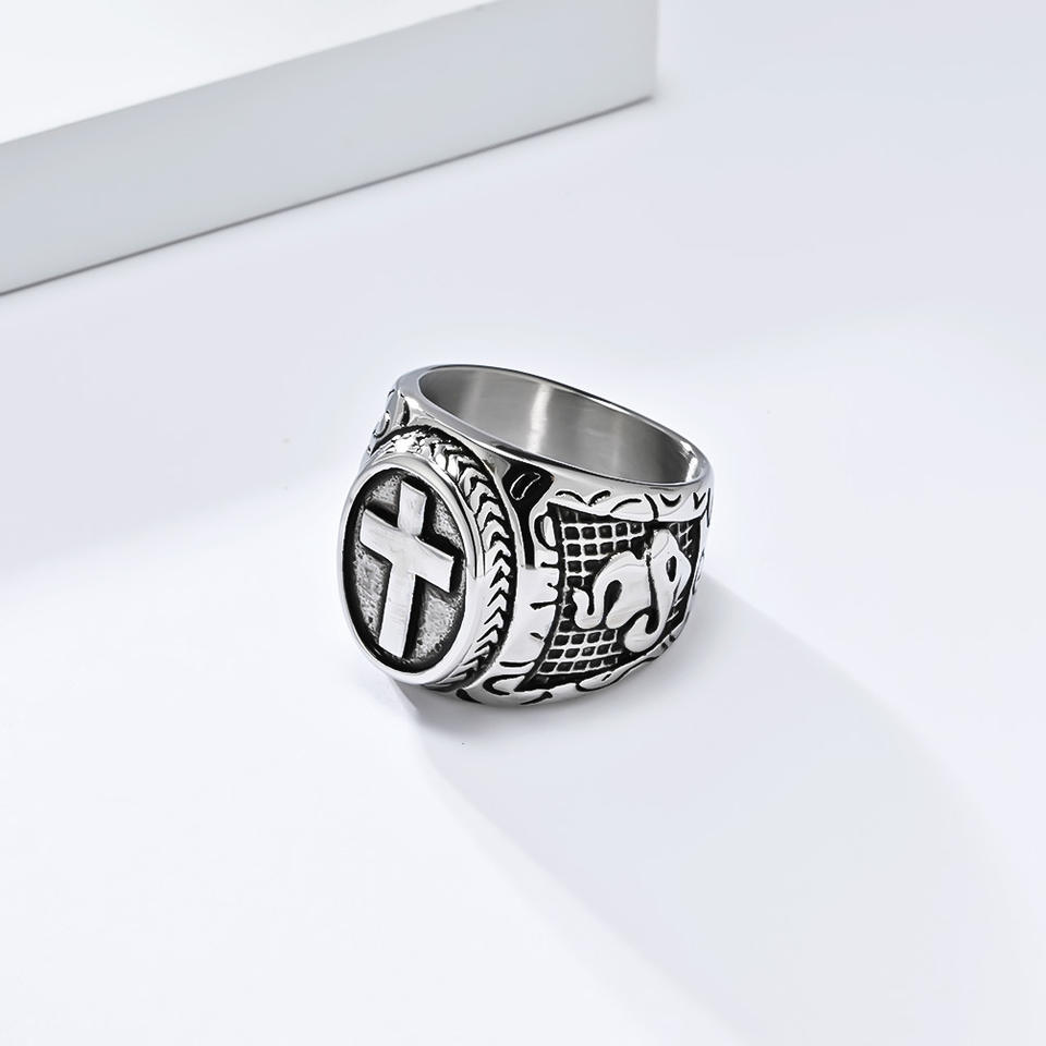 Anillo cruzado de acero de titanio para hombre, diseño de mano en oración, joyería Hip Hop, regalo, color plateado y dorado