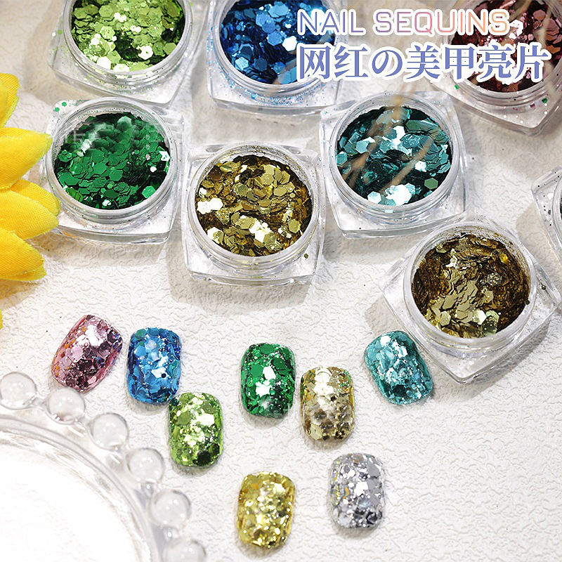Cross-border 2022 New Net Red Acrylic Nail Art Lentejuelas Gradient Glitter Mixed Light Jewelry Popping Powder Decoraciones al por mayor