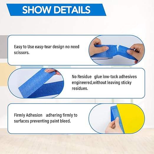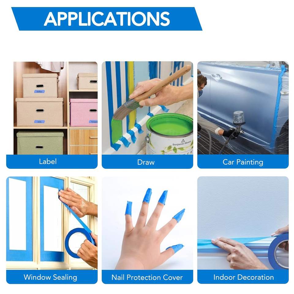 Cinta de Papel de Enmascarar Azul Transfronteriza, Resistente a los Rayos UV, para Pintura en Aerosol, Arte DIY, Decodificación de Color, Papel Crepé Personalizable, Goma