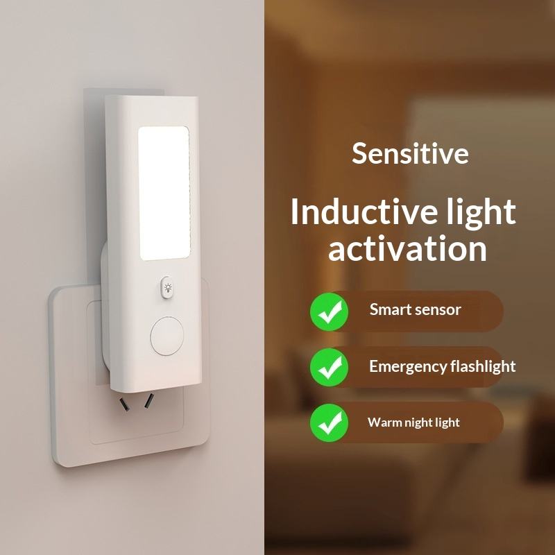 Luz Nocturna de Doble Propósito con Sensor de Movimiento y Enchufe, Recargable por USB, Ideal para Viajes Internacionales