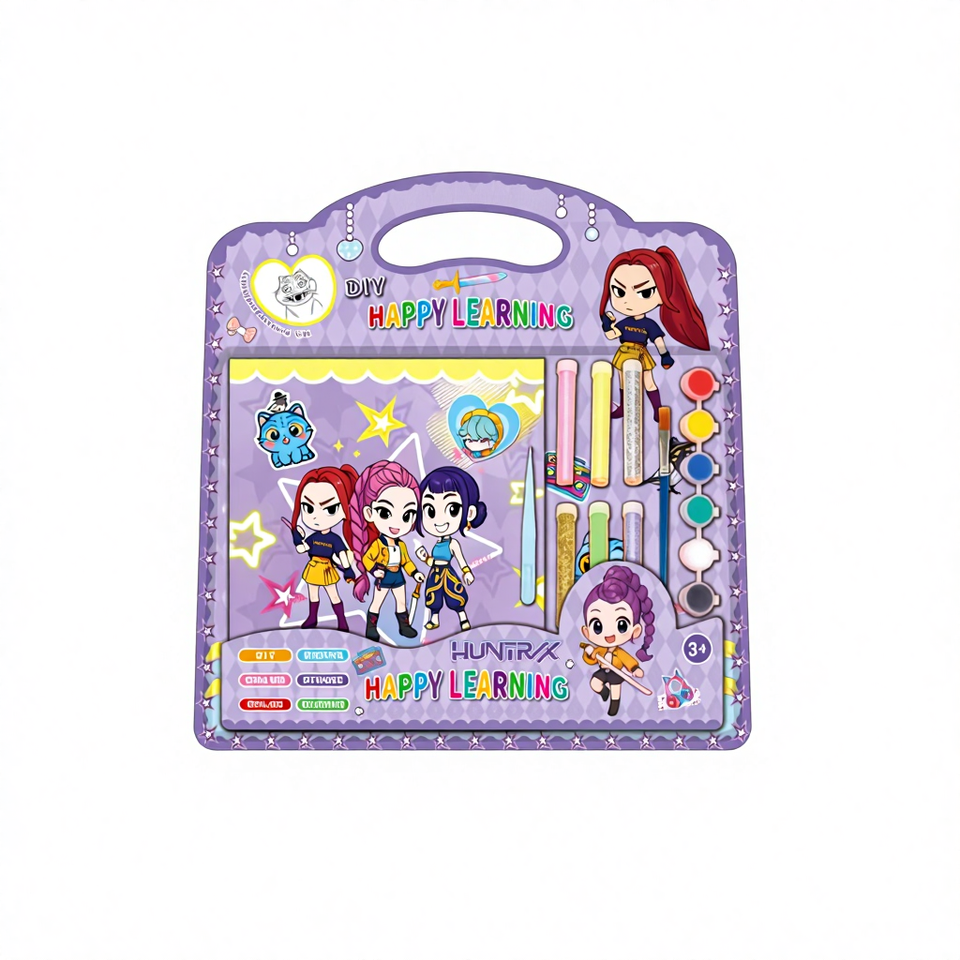 Libro de Colorear con Temática del Grupo KPOP HUNTRX, Pintura Gouache 3D Pintada a Mano, Set de Maquillaje con Brillo DIY para Todas las Edades