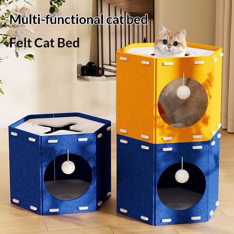 Cama para Gatos Multifuncional Transfronteriza, Rascador, Uso en Cuatro Estaciones, Diseño de Dos Capas, Sin Migas, Material de Fieltro para Dormir