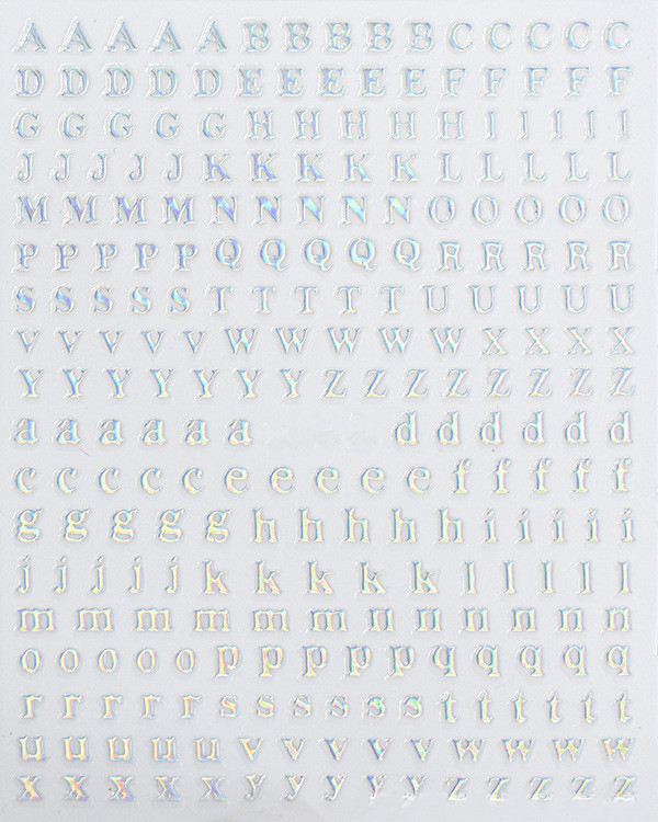 Pegatina láser para decoración de uñas con letras 3D de plástico de nuevo estilo francés transfronterizo, 26 estuches en inglés, fácil de aplicar, pegatina adhesiva para uñas DIY