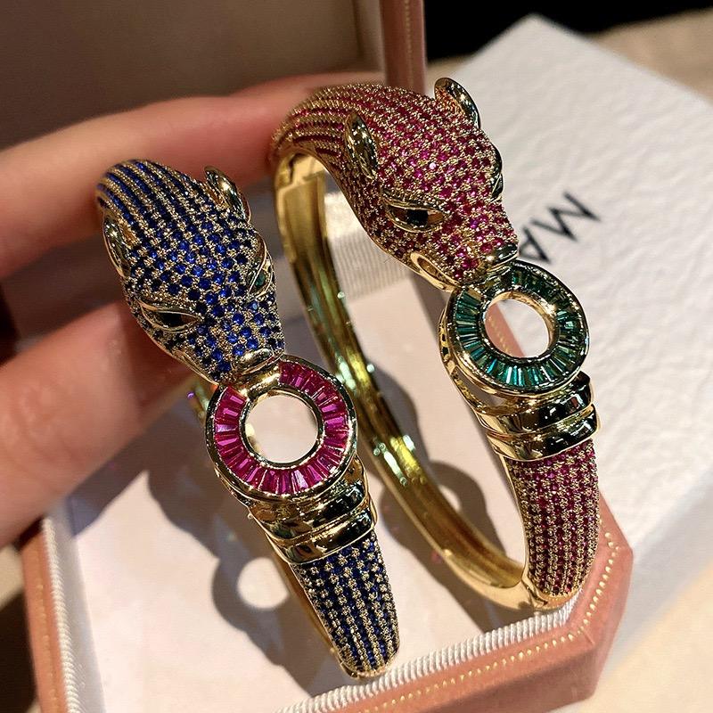 Pulsera de Zirconia con Baño de Oro 18K y Diamantes, Estilo Leopardo, Novedad Transfronteriza, para Mujer, Superventas, Retro y de Moda