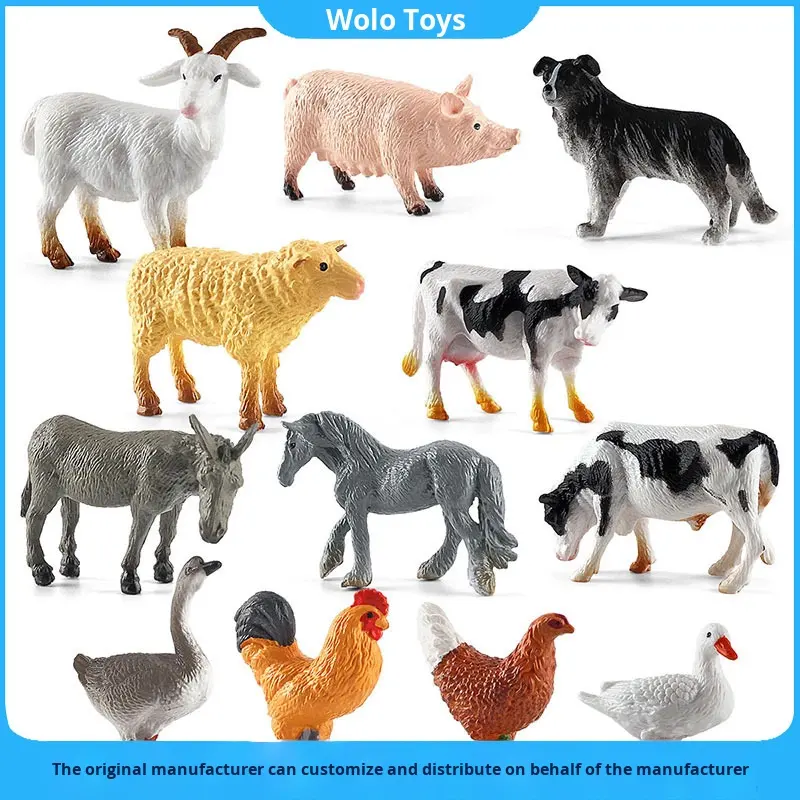 Mini Granja de Simulación Transfronteriza, Aves de Corral, Pollo, Pato, Ganso, Vaca Lechera, Modelo de Animales Pequeños, Mesa de Arena para Maternidad, Juguete de Paisaje de PVC
