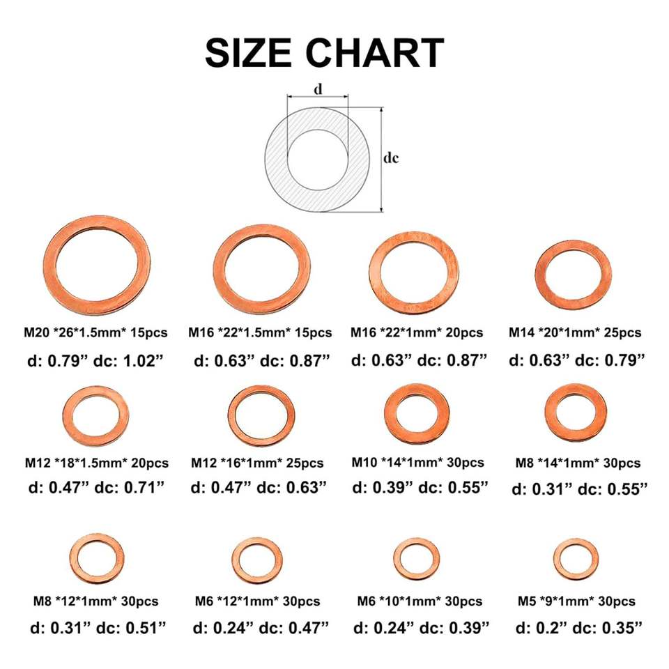 Venta al por mayor transfronteriza 300 piezas sello de aceite en caja cobre métrico junta de cobre Junta