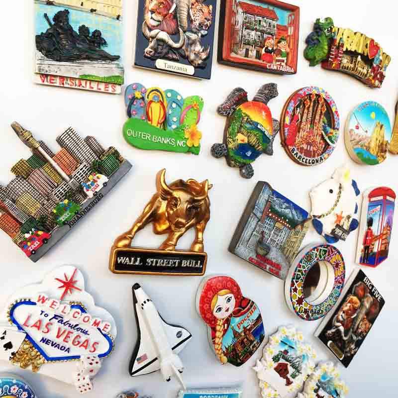 Comercio electrónico transfronterizo al por mayor de productos en stock, imanes magnéticos para nevera como recuerdos de viaje de todo Europa y América.