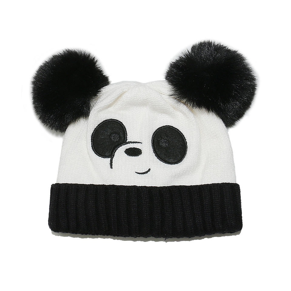 Gorro de lana de felpa transfronterizo para Shein, gorro de punto de Panda de dibujos animados para niñas, tela impermeable