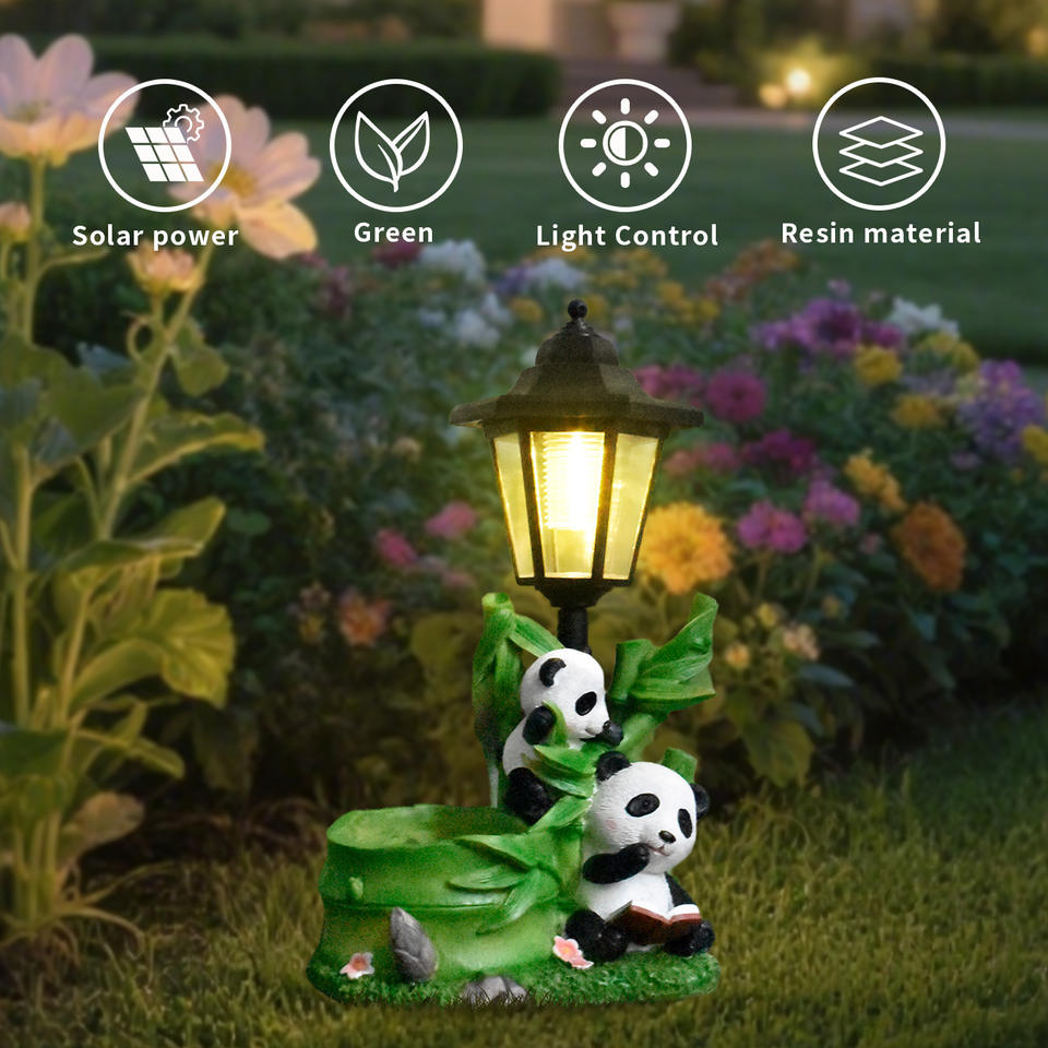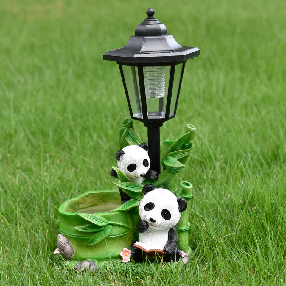 Tanque de flores de Panda de dibujos animados de Villa de patio nuevo transfronterizo, adorno de luz de jardín solar de jardín al aire libre