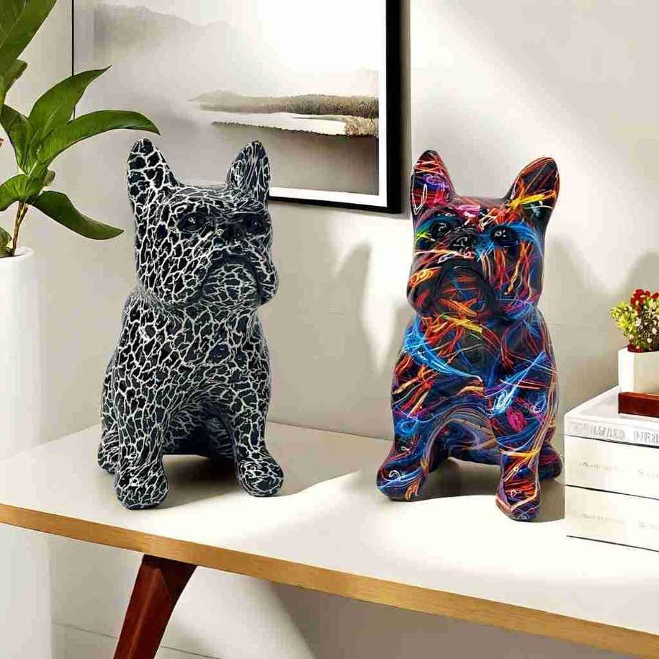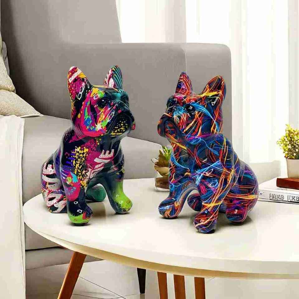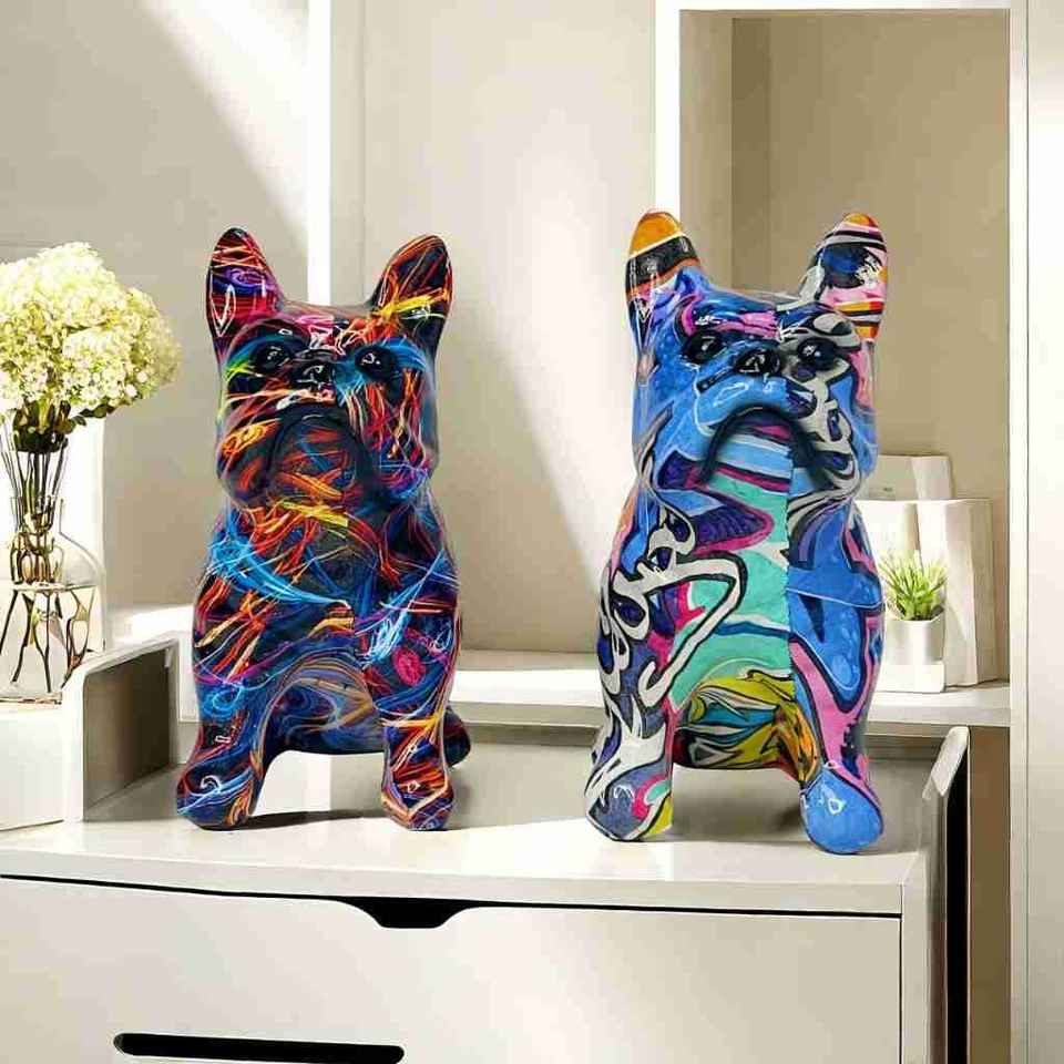 Figura Decorativa de Bulldog Pintada a Mano, Arte Folclórico Colorido en Resina Epoxi, Adorno Artístico para el Hogar, Sala de Estar, Porche, Vinoteca
