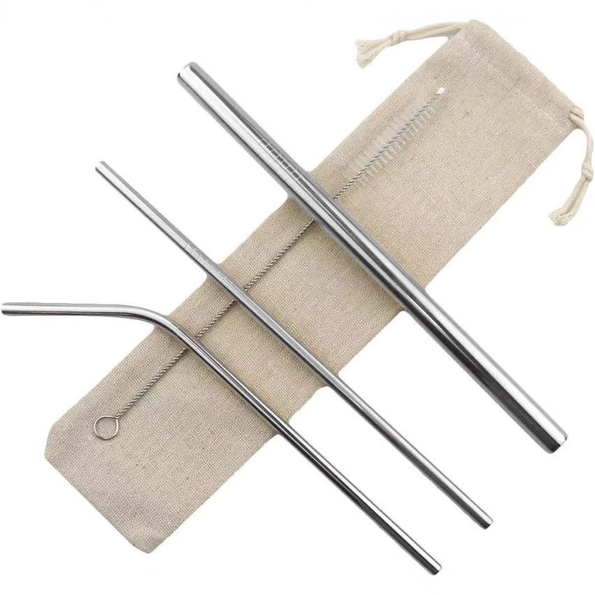 Pajita de acero inoxidable con borde cruzado, bebida de metal, café, leche, té, 304 pajita, Juego de 4 piezas, juego de pajitas de acero inoxidable