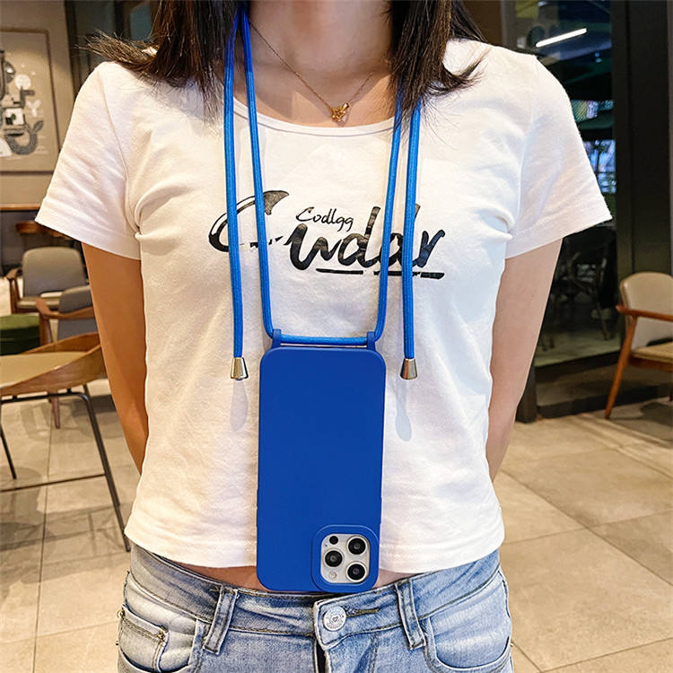 Collar cruzado cuerda suave silicona mate funda para iPhone 15 14 13 Pro Max 11 12 XS XR 7 8 Plus SE 3 cordón cubierta a prueba de golpes