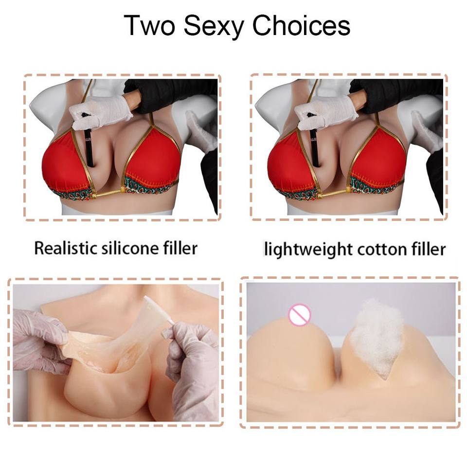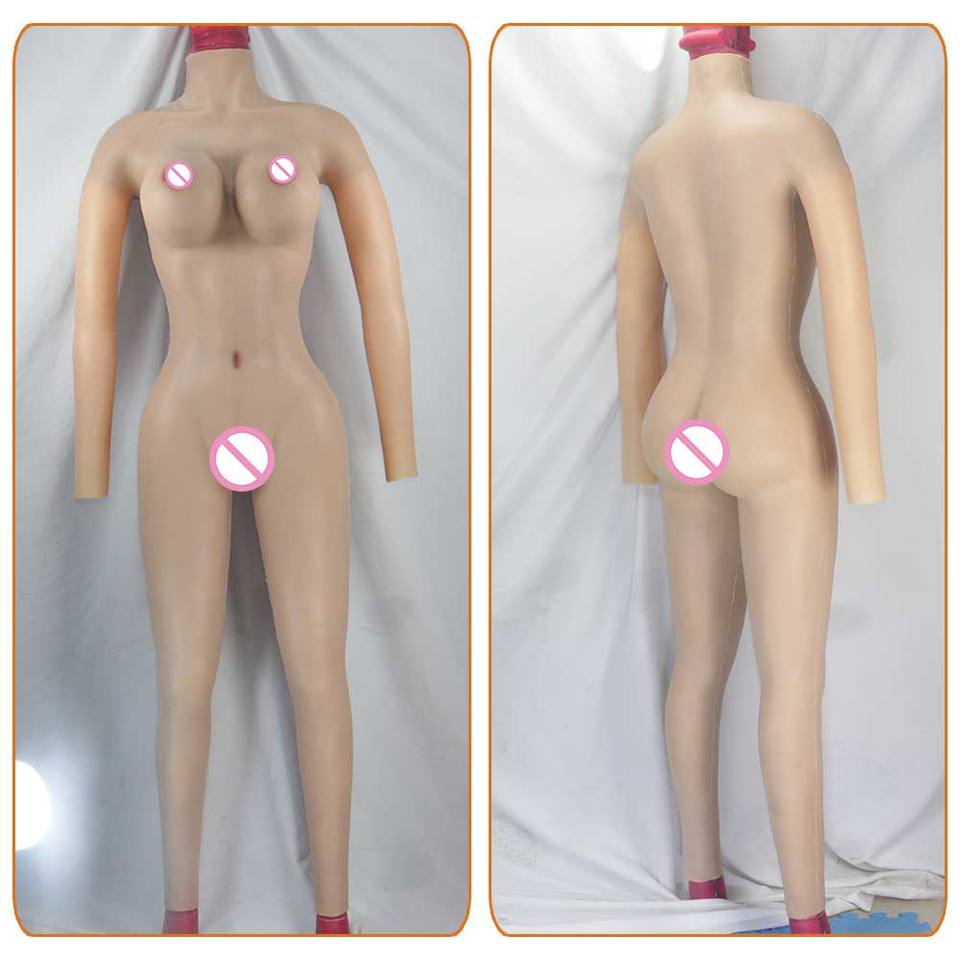 Traje corporal de silicona para travestismo/transgénero con copas C–G, pechos falsos y vagina artificial; body completo de silicona con brazos