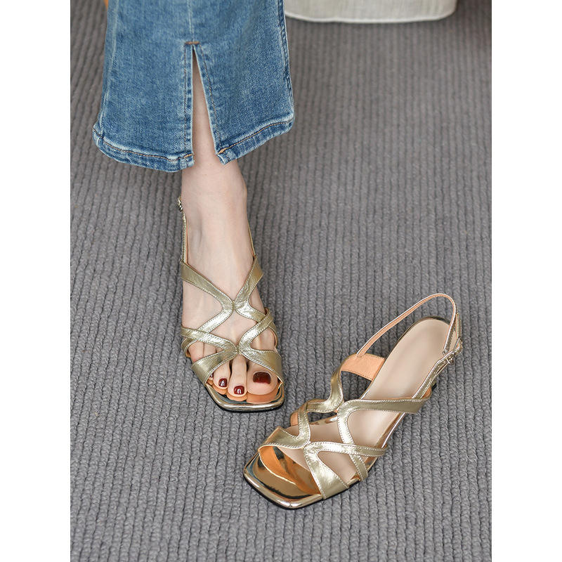 Sandalias sexys de tacón alto con tiras cruzadas y punta cuadrada abierta para mujer, con correas traseras, negras, antideslizantes y cómodas.