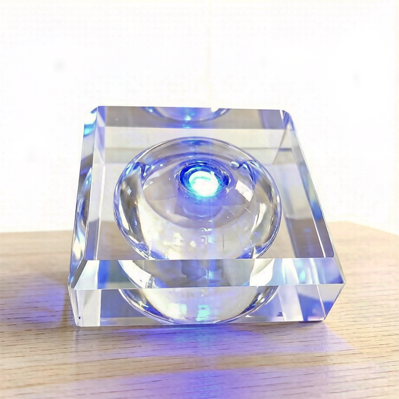 Lámpara Nocturna LED con Base de Cristal, Bolas de Cristal con Grabado Láser y Base con Luces LED