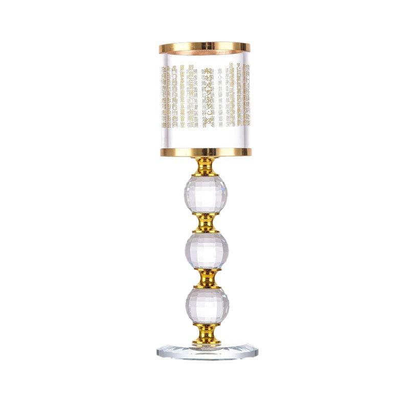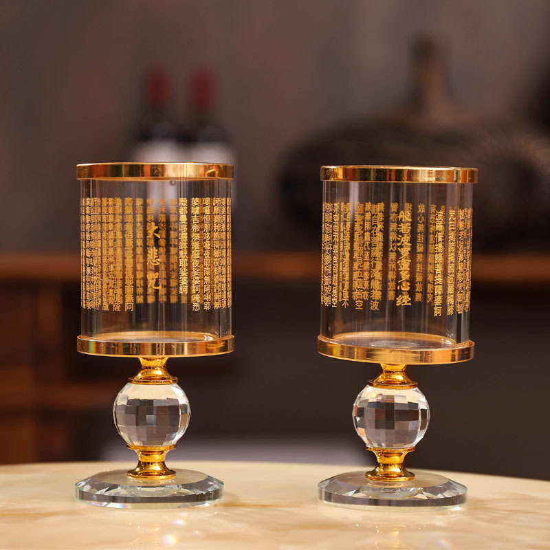 Candelabro de cristal grabado con el sutra de gran compasión para ofrendas de Buda, uso religioso en el hogar, cristal artificial amarillo