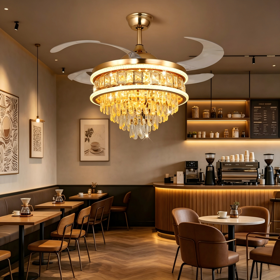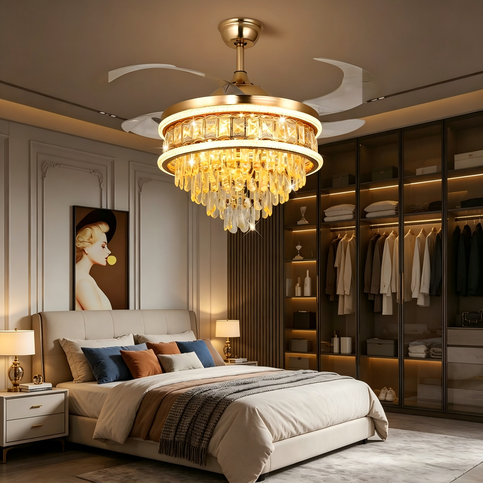 Ventilador de Techo Europeo de Cristal con Lámpara, Control Remoto, 6 Velocidades, Motor Reversible, Iluminación LED Decorativa para Interiores, Hogar y Hotel