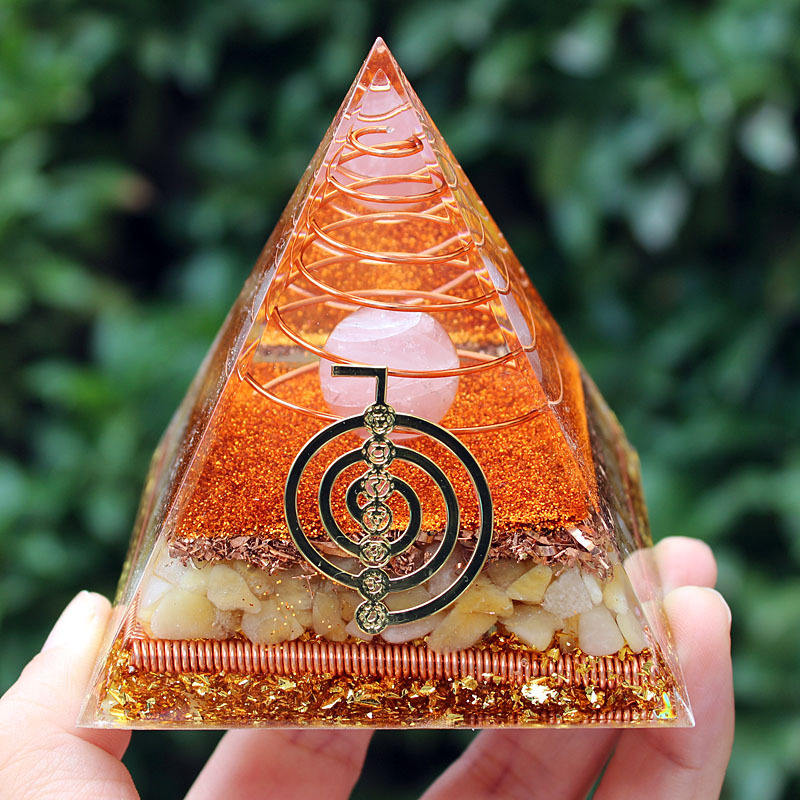Pirámide de Resina Epoxi con Cristales, Adorno de Escritorio, Bola Rosa de 7 Pulgadas, Decoración para el Hogar, Regalo