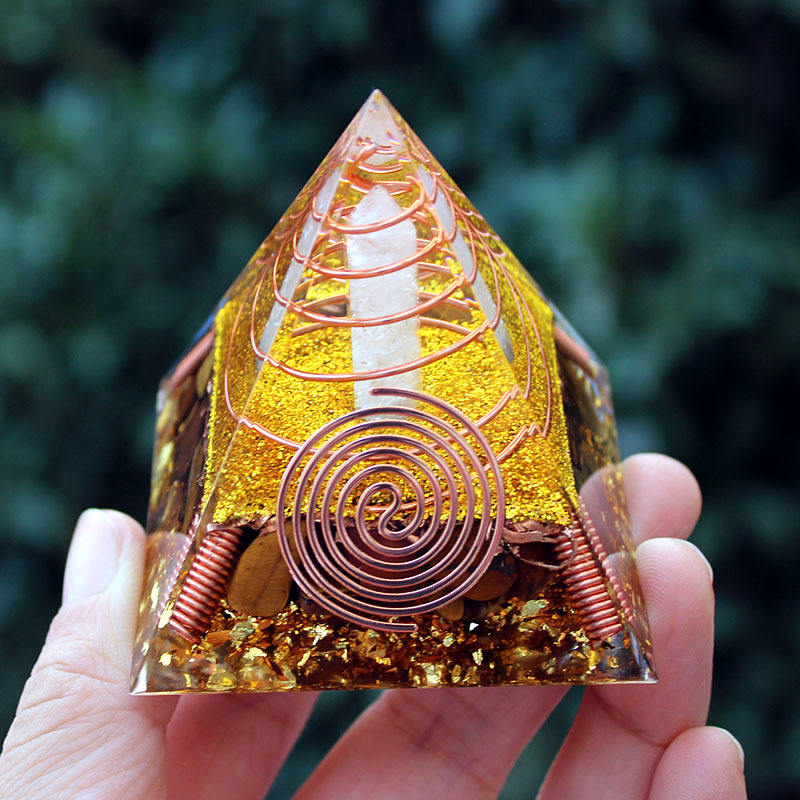 Pirámide de Cristal con Resina Epoxi, Adorno Artesanal para Escritorio, Decoración Hecha a Mano para el Hogar