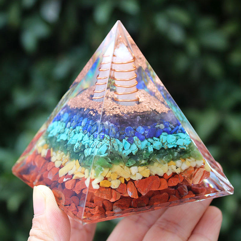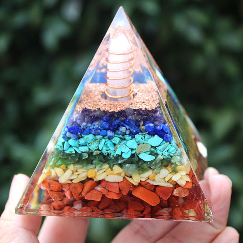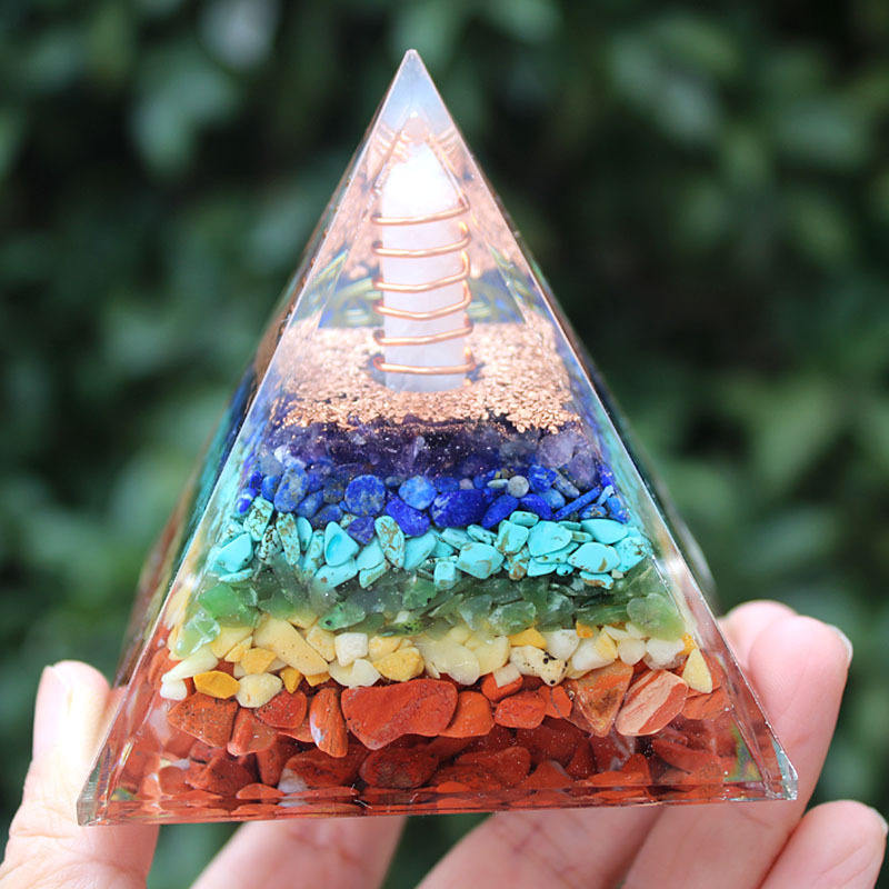 Pirámide de Cristal con Base de Resina Epoxi, Adorno de Escritorio con Pilar de Cristal Blanco, Decoración para el Hogar, Torre de 7 Pisos