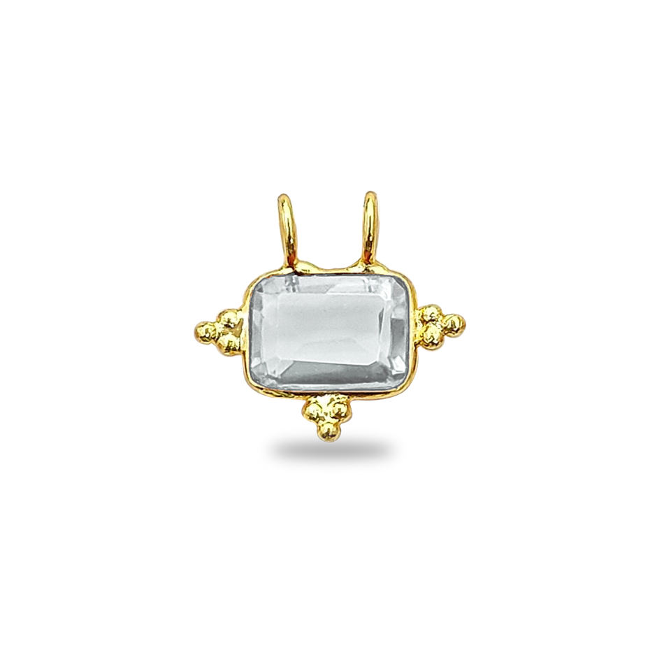 Colgante de cuarzo transparente rectangular con bisel elegante, hecho a mano, chapado en oro, joyería de piedra de nacimiento, proveedor de joyería de cuarzo transparente