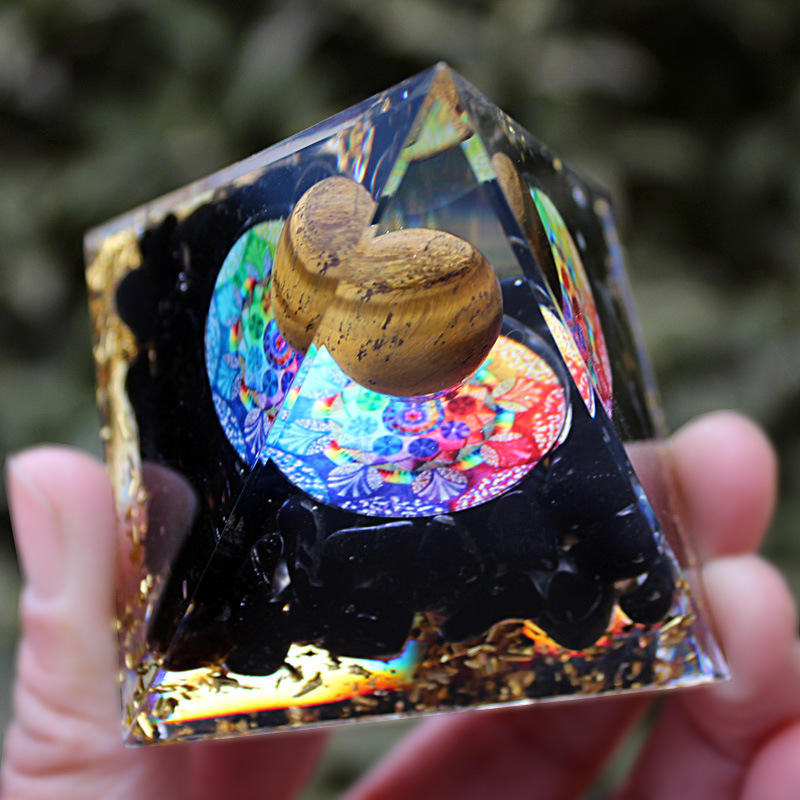 Pirámide de Resina Epoxi con Esfera de Ojo de Tigre, Decoración para el Hogar, Artesanía en Resina, Adorno de Escritorio, 5cm, 6cm, 8cm
