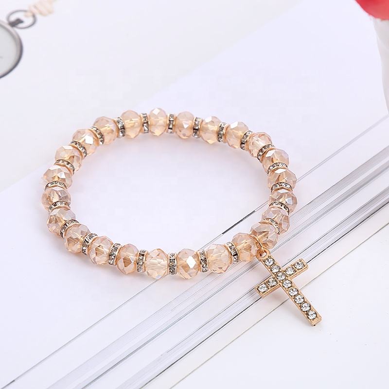Pulseras de cuentas facetadas de cristal, pulsera de cuentas elásticas, brazalete elástico deslizante, joyería de cuentas de cristal