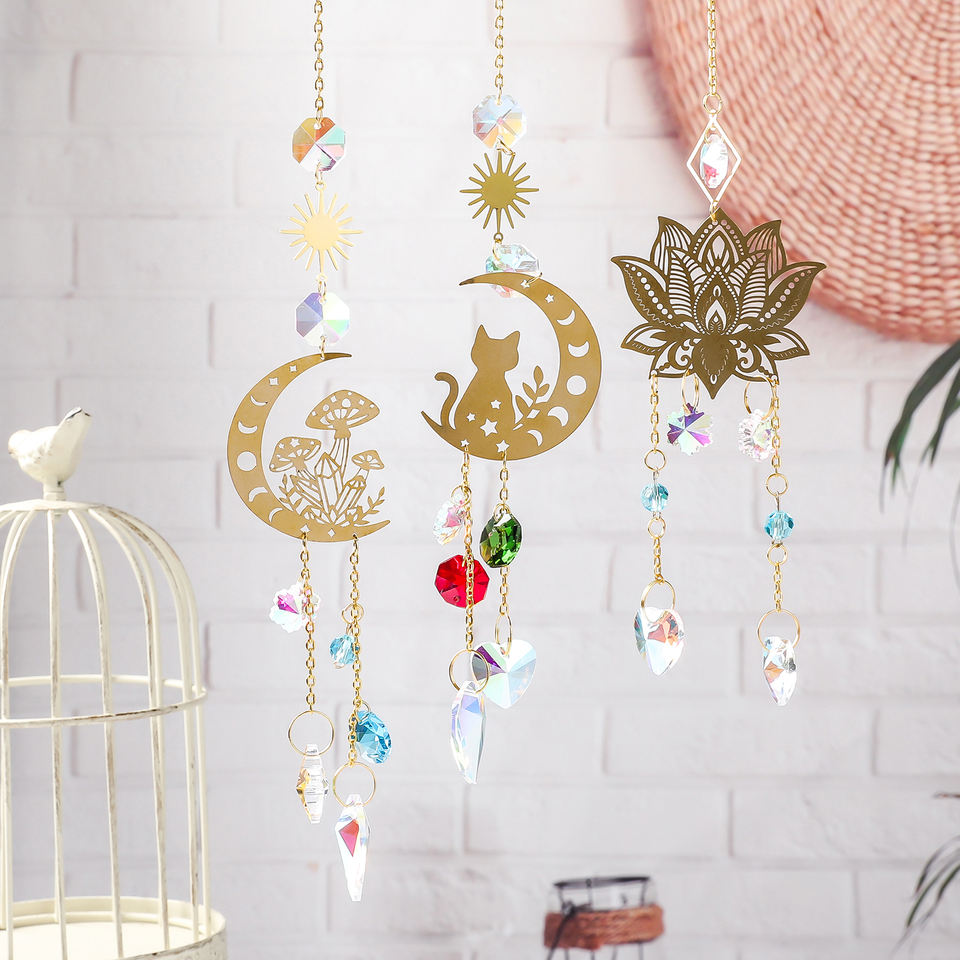 Cristal gato llave encanto espejo colgante adornos regalo bolsa colgante