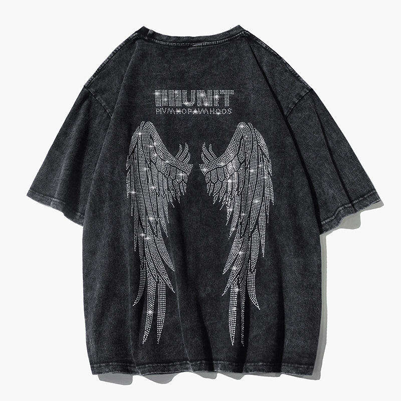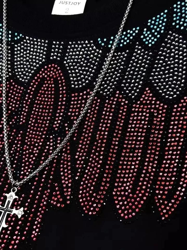 Camisetas con estampado de logotipo de cristal para hombre, camiseta personalizada con diamantes de imitación, camiseta ostentosa de moda de algodón pesado con hombros caídos de manga corta de Hip Hop