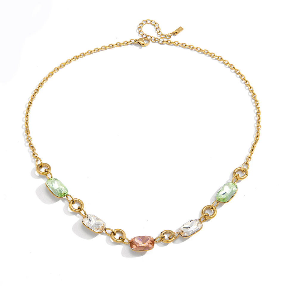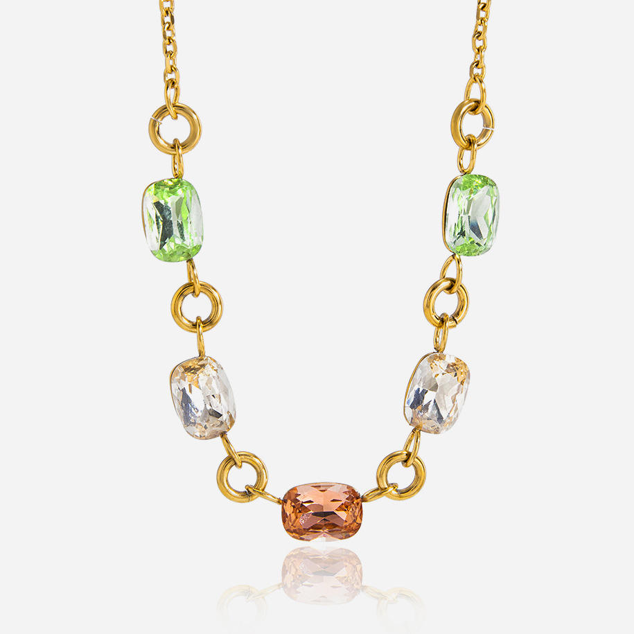 Número de pieza:Collar con cadena cruzada de pedrería cuadrada de color