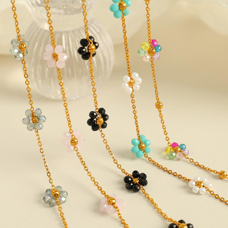 Collar de cristal con forma de flor, cadena dorada con diseño de margarita de cristal y diamantes de imitación para mujer, uso diario