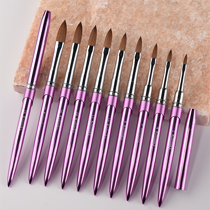 Nombre del producto:Cepillo de acrílico de uñas original Kolinsky puro con mango de metal púrpura