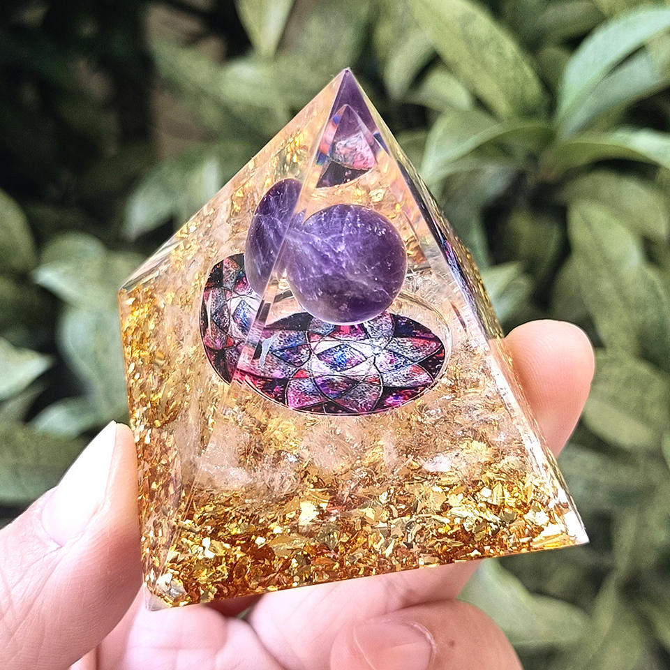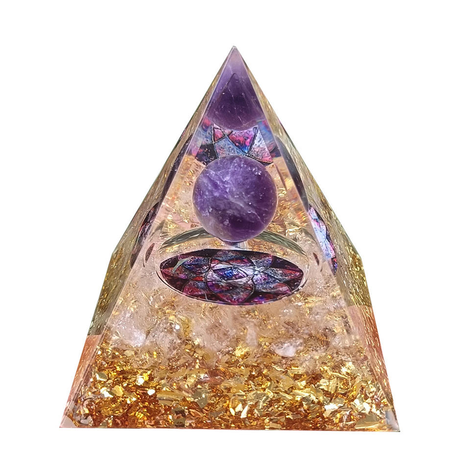 Pirámide de Cristal con Piedras, Adorno de Resina Epoxi para Escritorio, Decoración de Acuario, Esfera de Amatista, Loto de Cristal Blanco, Regalo
