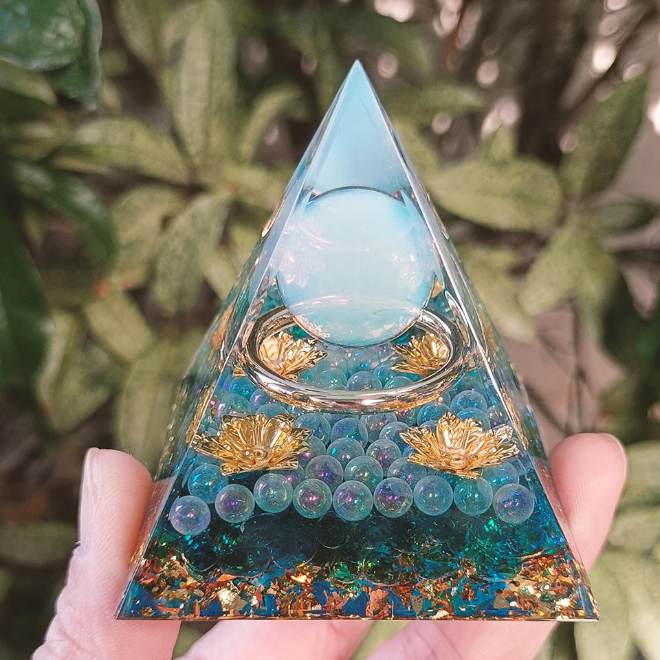 Pirámide de Cristal con Piedras, Adorno de Resina Epoxi para Escritorio, Decoración de Acuario, Cristal Azul con Luces, Regalo