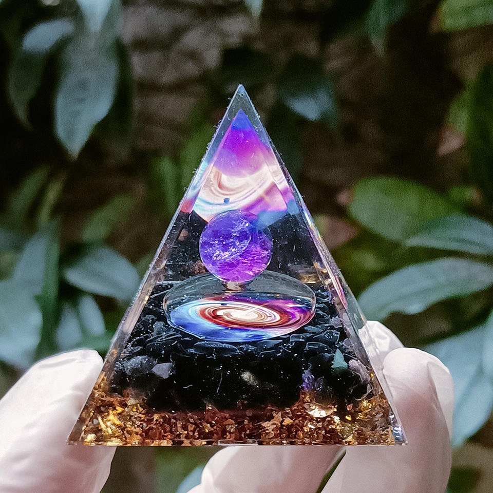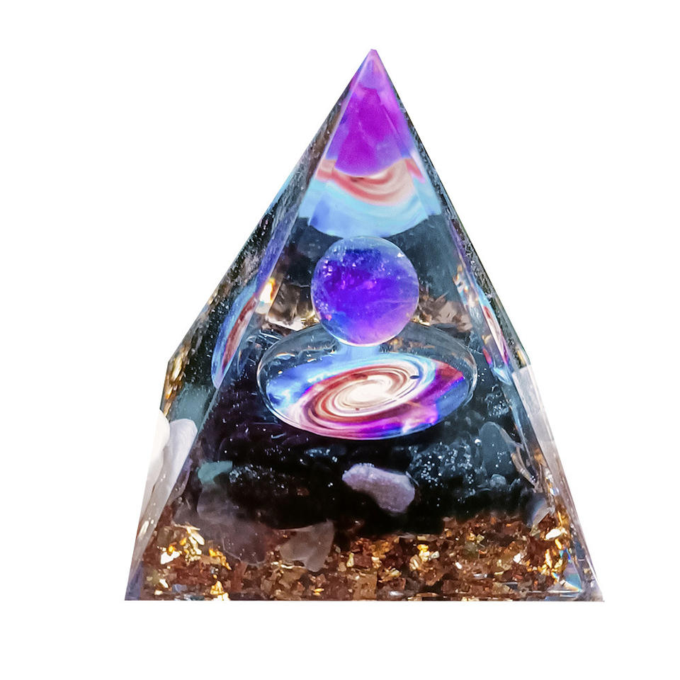 Pirámide de Cristal con Piedras, Adorno de Resina Epoxi para Escritorio, con Esfera de Amatista, Decoración de Acuario con Vórtice, Regalo