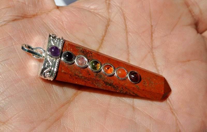 Colgante de cristal jaspe rojo 7 chakra colgante plano piedra preciosa curativa lápiz plano cristal ágata collar mayorista