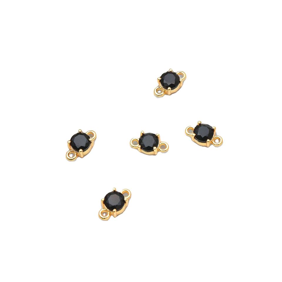 Conector de Plata de Ley con Cristal de Estrás de 5mm, Gema Facetada, Baño de Oro, Engaste de Puntas, Doble Anilla, Estilo Religioso