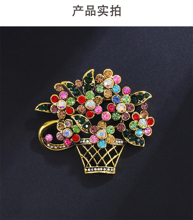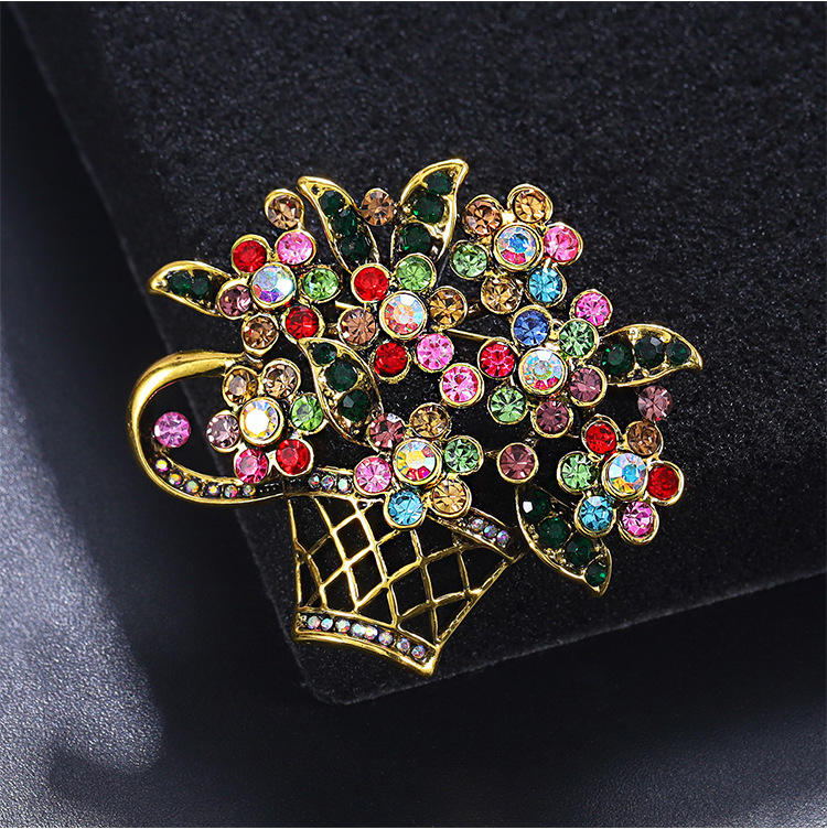 Broche de cesta de flores de diamantes de imitación de cristal para mujer, broche coreano de lujo, alfileres de joyería de ramillete de Collar de alta calidad