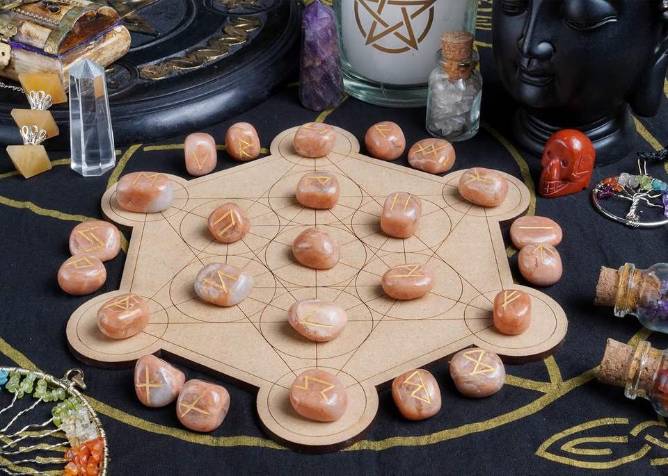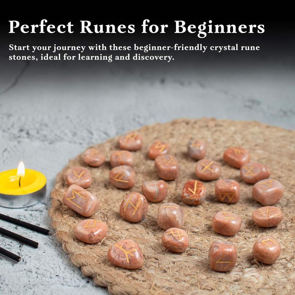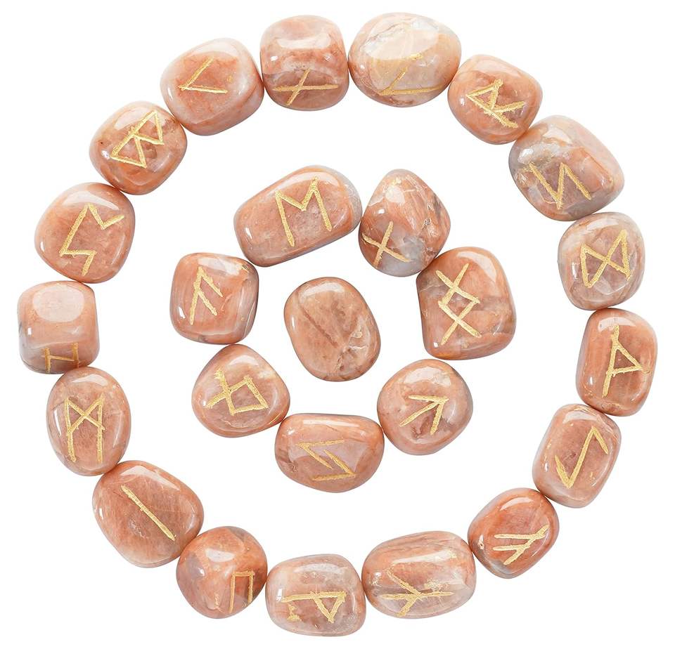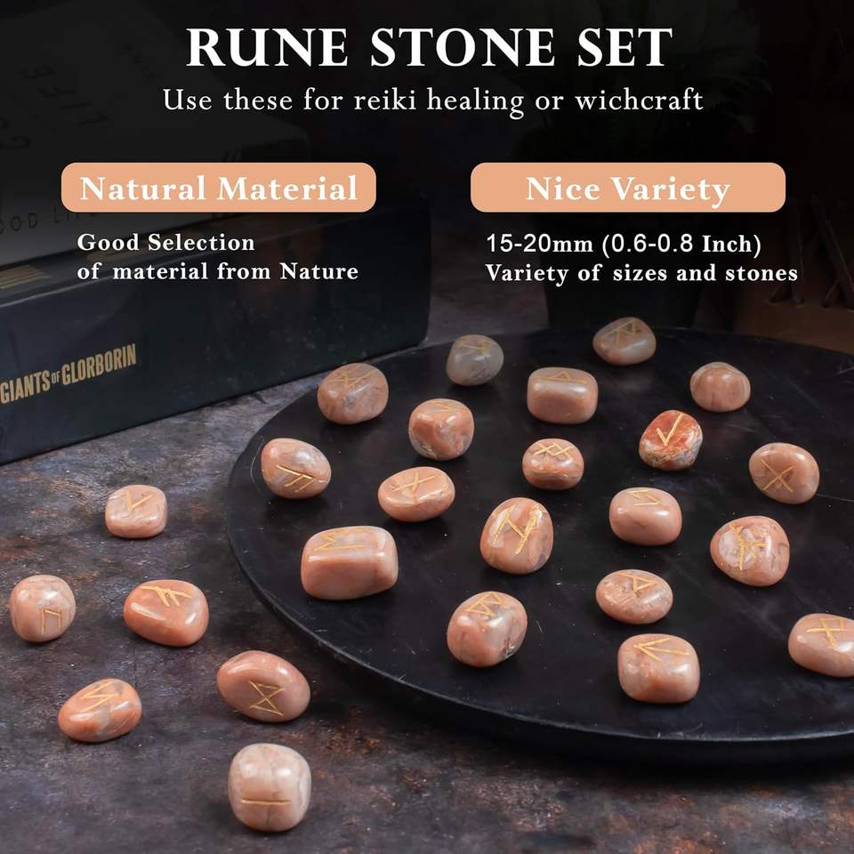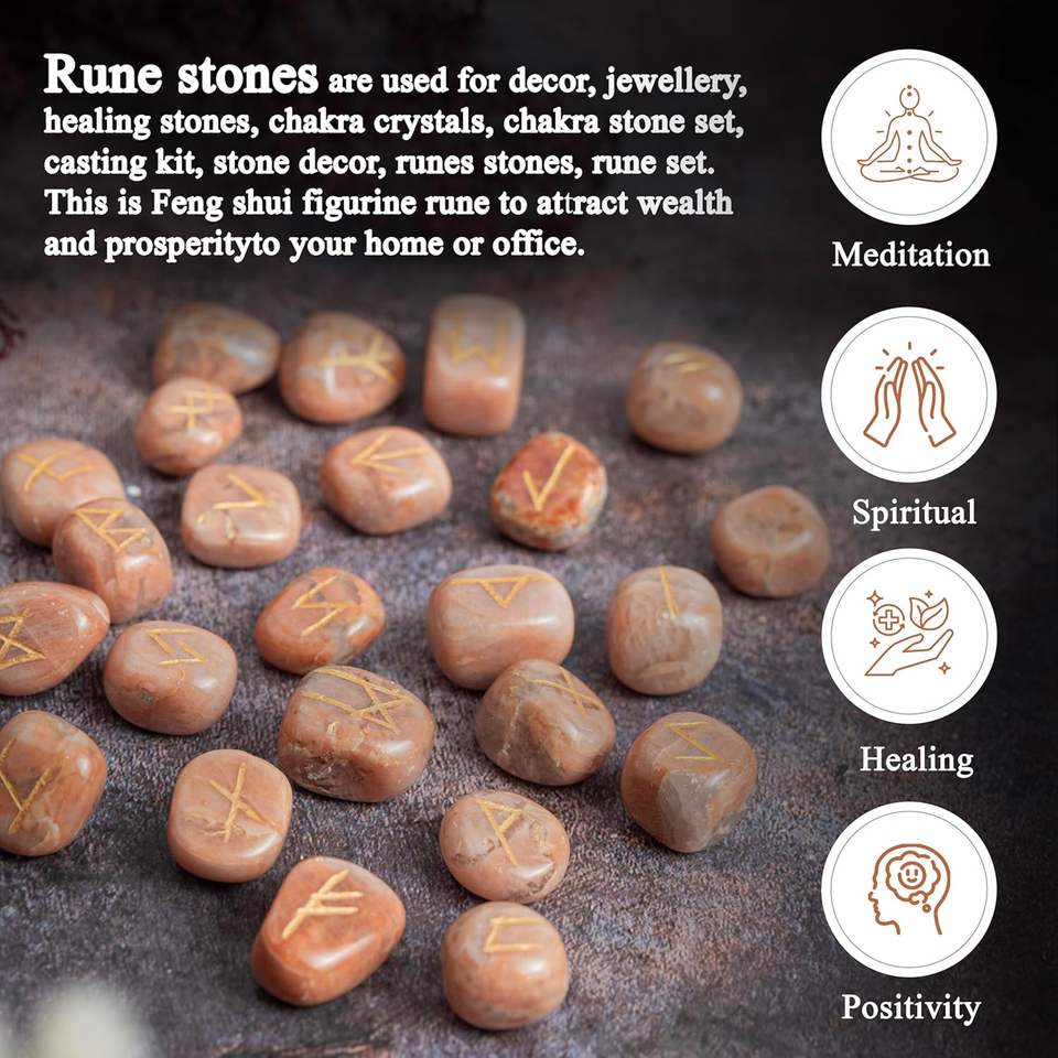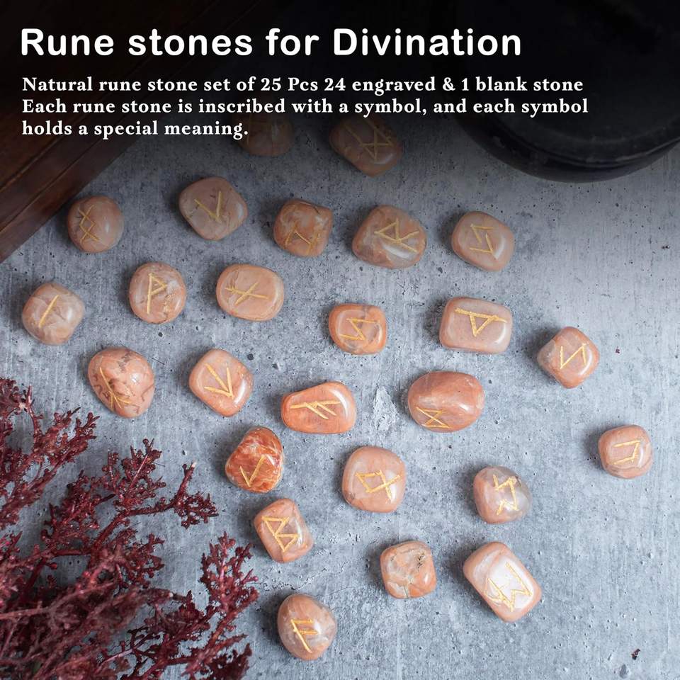 Juego de Runas de cristal-Juego de Runas de piedra lunar de melocotón de cristal curativo natural-Proveedor de juego de Runas de piedra lunar de melocotón para productos metafísicos