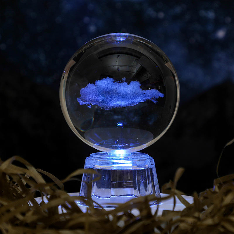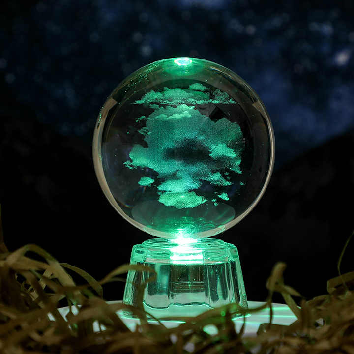 Luz de noche pequeña de cristal, bola 3D en el interior tallada, venta al por mayor, estilo de diseño de vidrio creativo, decoración del hogar, luz de noche de cristal
